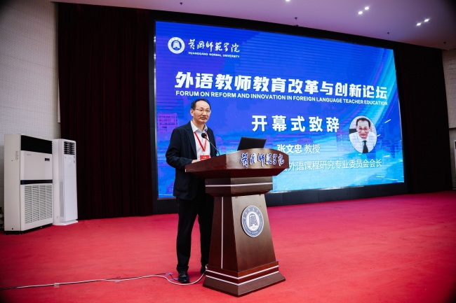 中国英汉语比较研究会外语课程研究专业委员会会长、南开大学张文忠教授在致辞中指出,当前外语教师教育面临新的机遇与挑战,论坛的举办不仅为共建共享、深化专业交流提供了重要平台,更为凝聚专业共识、激发思想碰撞、引领实践创新注入了新的动能。